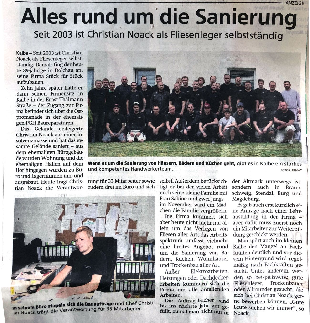 Seit 2003 steht Fliesen- und Trockenbau Christian Noack für saubere Arbeit, termintreue Ausführung und durchdachte Lösungen – vom Einfamilienhaus bis zum Großprojekt. Heute zählt unser Team 42 qualifizierte Fachkräfte, die jedes Projekt mit Sorgfalt, Engagement und Verantwortung realisieren.